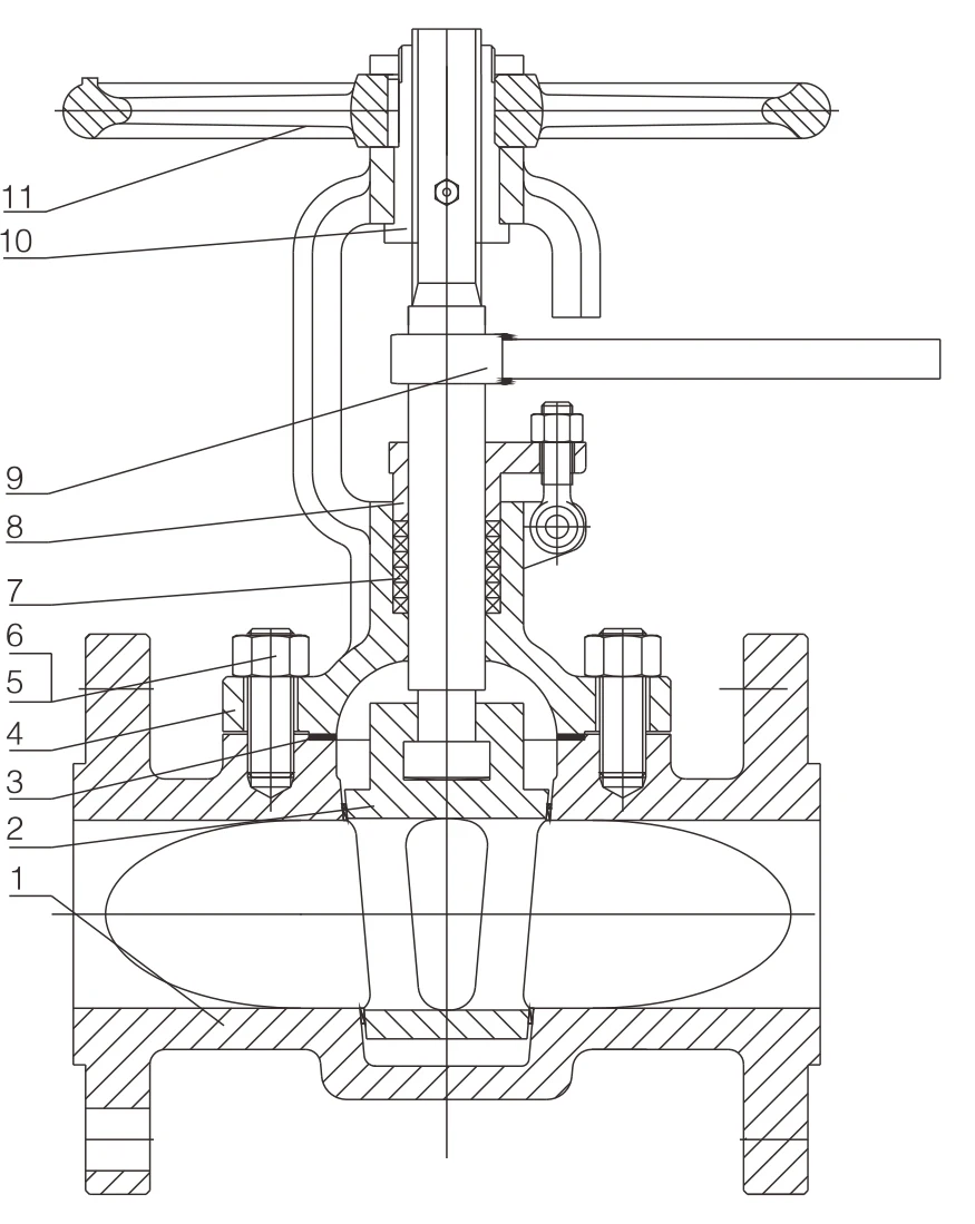 | Part name | Body | Plug | Gasket | Cover | Bolt | Nut | Packing | Gland | Wrench | Yoke nut | Hand wheel |