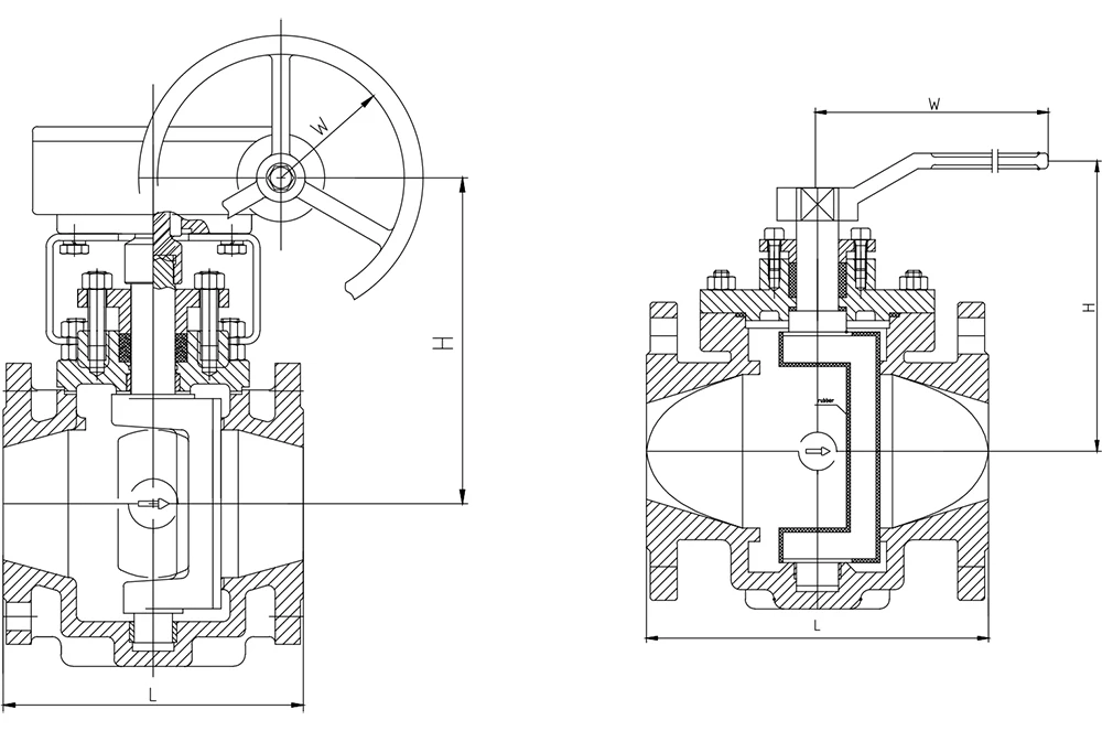 Eccentric Plug valve acc.to ANSl is applicable to the cutting and conn ection of pipelines medium in various industries such as petroleum, chemical industry, pharmacy, chemical fertilizer, pawer industry etc, under nominal pressure of CLASS 150~300LBS, and working temperature of -29℃~ 180℃.