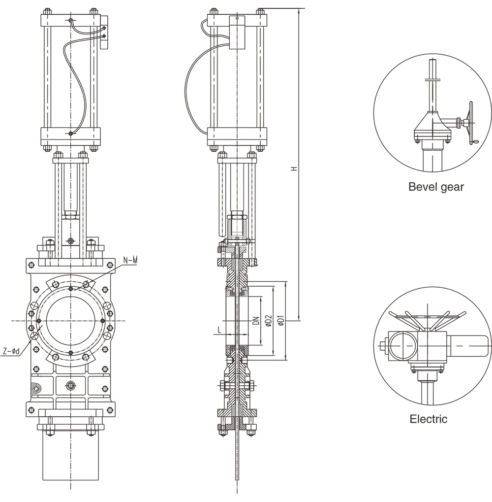 Home » Products » Knife Gate Valve » High Quality Bevel Gear / Electric Control Gate Valve DN50~DN600 Through Conduit Knife Gate Valve