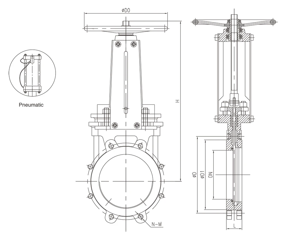 Pneumatic Knife Gate Valve DN50 Custom Stainless Steel Knife Gate Valve